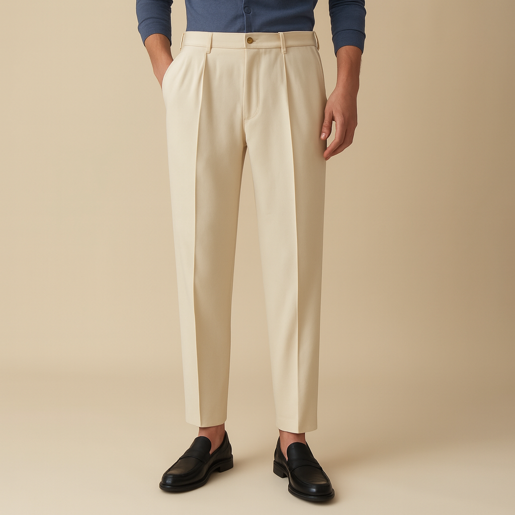 The thoughtfully chosen fabric provides breathability and ease, while the understated design reflects a polished yet relaxed aesthetic. Elevate your wardrobe with the Alessandro Tailored Pantalon—a piece that merges timeless style with enduring comfort.